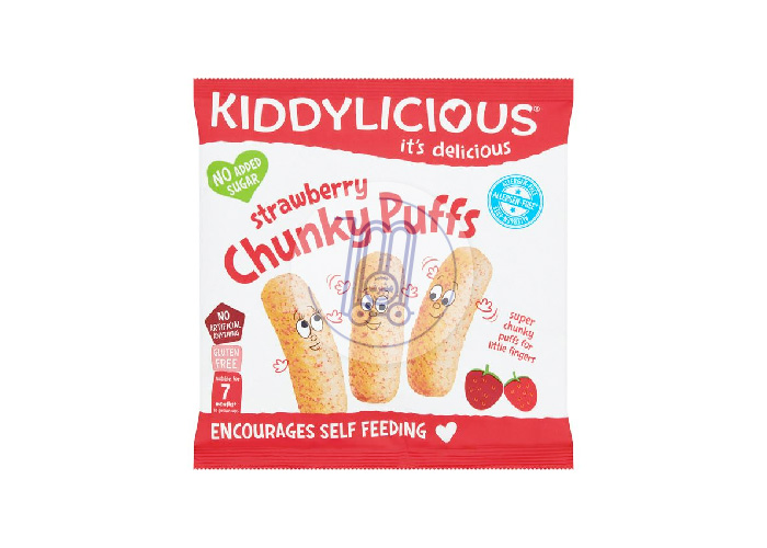رقائق الذرة المنفوخة المكتنزة بنكهة الفراولة كيديليشيز مناسبه للاطفال من عمر7شهر12جم