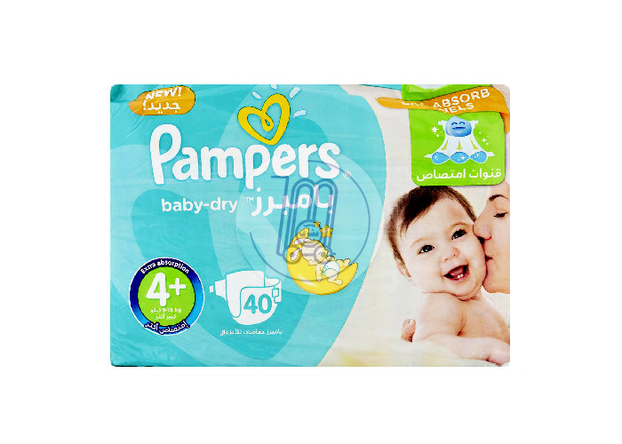 حفاضات اطفال بامبرز نشاط وحيوية كبير اكثر امتصاص رقم 4+ 40 حفاض