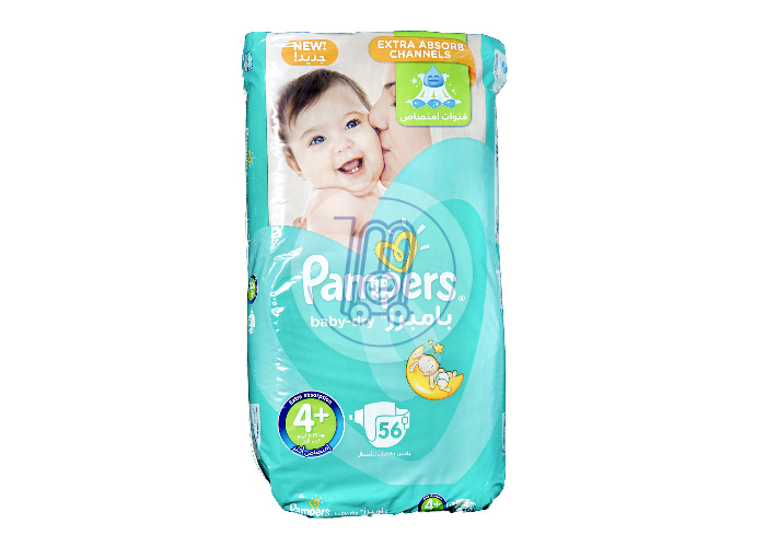 حفاضات اطفال بامبرز نشاط وحيوية كبير اكثر امتصاص رقم 4+ 56 حفاض